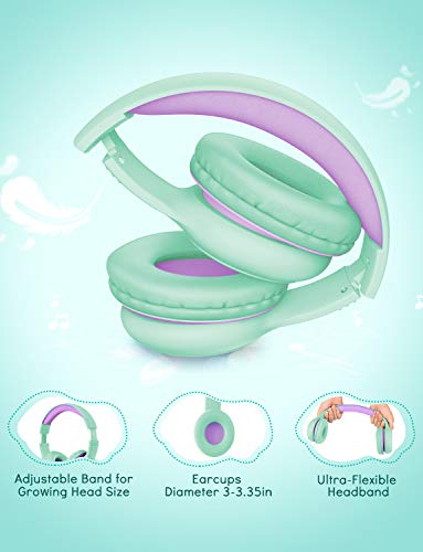 Headphones Designed for Children Characterized by soft over-ear ear muffs and food-grade material, the lightweight headphone specially designed for children is the best choice. Adjustable headband is comfortably suitable for children around 6-13 years old. Lasting accompany is incredibly ensured for your children’s growing up. Enjoy Family Leisure: Put this headset on your child’s ears, offer them delight and freedom, let them enjoy, experience, and learn to share. Accompany with your child by watching TV or reading, without disturbance for each other. Convenient Wired Control Short press: Answer/ Hang up/ Play/ Pause Double press: next track Triple press: previous track Turn the switch to “on” to enable volume control below 85db. Turn the switch to “off” to disable volume control in noisy . Universal Compatibility Mow kids headphone is fully compatible with all 3. 5mm jack devices like iPad, iPod, iPhone, android cell phone, smartphone, tablets, laptops, computers, PC desktops, mp3, mp4, audio book device, CD and DVD player etc. Packing List 1 × Mow Kids Headphone 1 × User Manual 1 × 3. 5mm audio cable